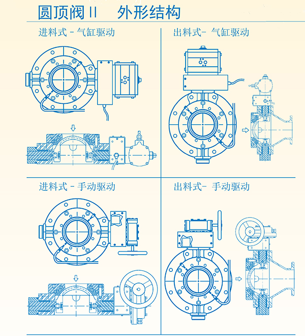關閉特性:球頂切向切斷料栓,有效減小磨損;