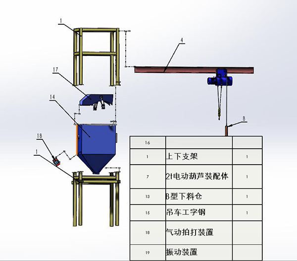 振動裝置:振動下料倉使倉內的完全物料下落,減少倉內的物料下落時間。